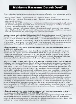 11 yıl süren hukuk mücadelesinin sonunda, yaklaşık 500 milyon TL değerindeki taşınmazlar yeniden Ümraniye Esnaf ve Sanatkârlar Odası’na kazandırıldı; Başkan Mehmet Özdil, kararın “Ümraniye esnafının birlik ve kararlılığının zaferi” olduğunu vurguladı. Başkan Özdil; Ümraniye’nin göbeğinde 500 m2 bir alanda yaklaşık 500 Milyon değerinde olan 3 aydı binayı yeniden odamıza kazandırma mücadelesini Ümraniye esnafına Ümraniye İlçemize hayırlı olmasını dilerim dedi.