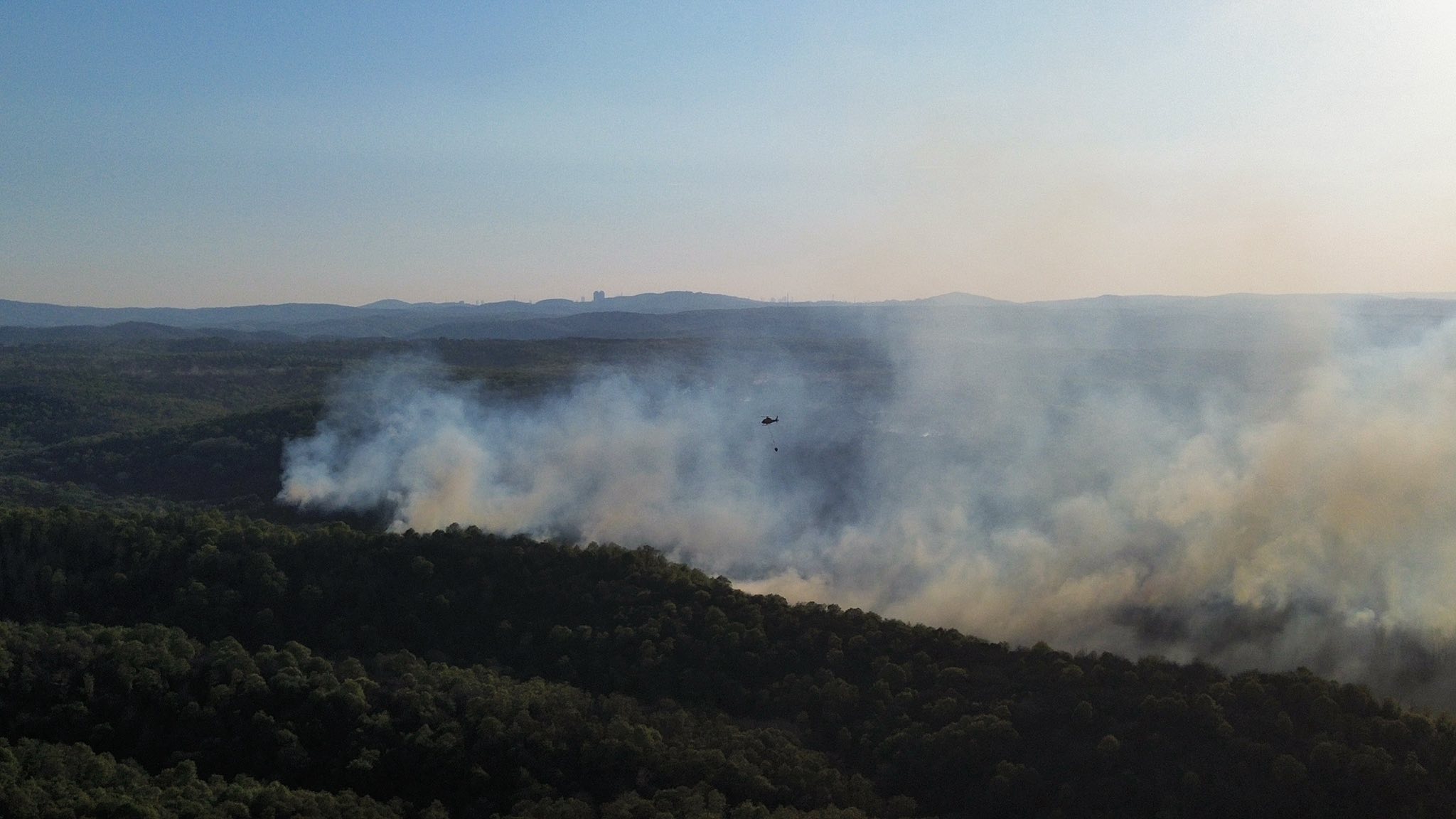 Beykoz Kılıçlı Mahallesinde ormanlık alanda çıkan yangın kısa sürede büyüdü. Soğutma çalışmaları sırasında alevler yeniden yükseldi. Ekiplerin yangına müdahalesi sürüyor.