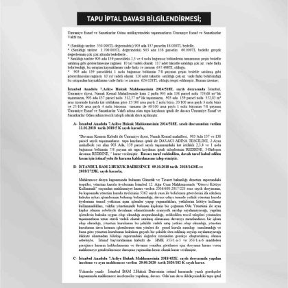 Bu kararla birlikte, 903 ada 137, 138 ve 139 parseldeki tüm taşınmazlar Ümraniye Esnaf ve Sanatkarlar Odası adına tapuya tescil edilmiş oldu.